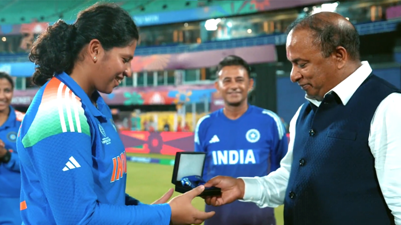First Fielding Medal of #CWC25 Awarded in Guwahati by BCCI’s Devajit Saikia 🏅